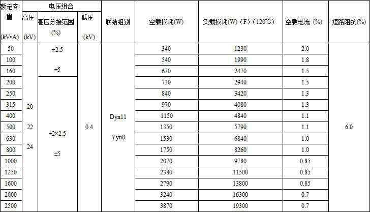 20kV级SC(B)系列干式变压器技术参数